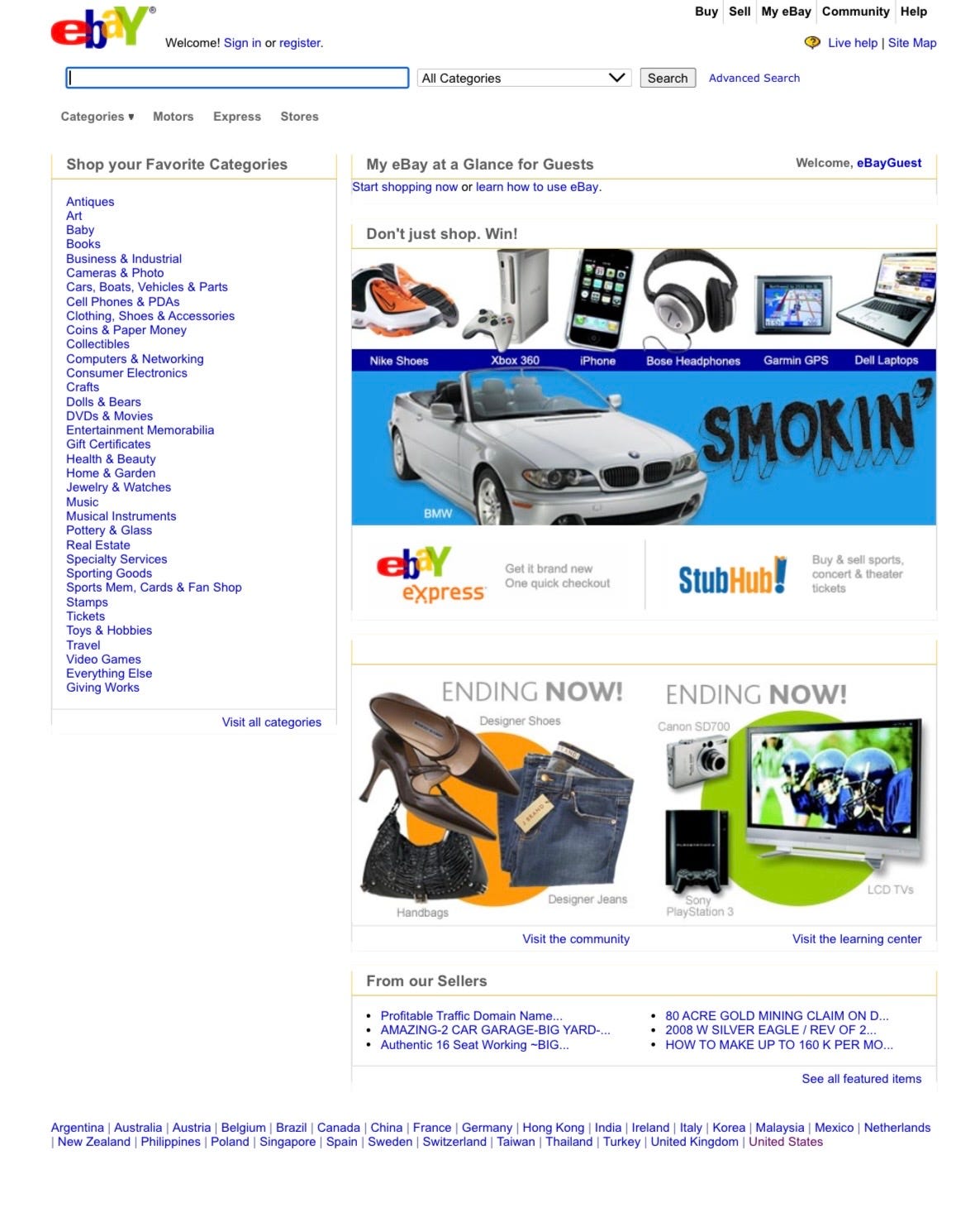 eBay homepage as it was 3 days before my 9th birthday in 2008